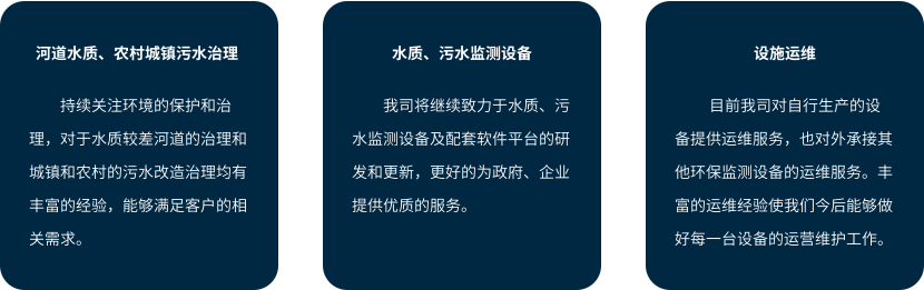 公司主营信息科技、污水处理科技、环境监测、环境污染治理、设施运营维护等业务,公司主要为水质、污水项目提供水质监测设备检测和平台软件建设等服务。